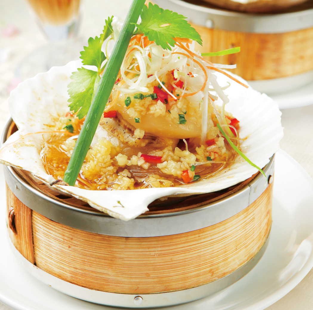 ホタテのニンニク蒸しは、にんにくの香りが食欲をそそる中華風の定番料理です。殻付きのホタテに春雨や香味野菜を乗せ、特製のタレで蒸し上げます。